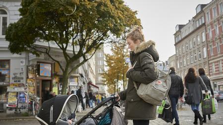Fjällräven kanken am kinderwagen befestigen.