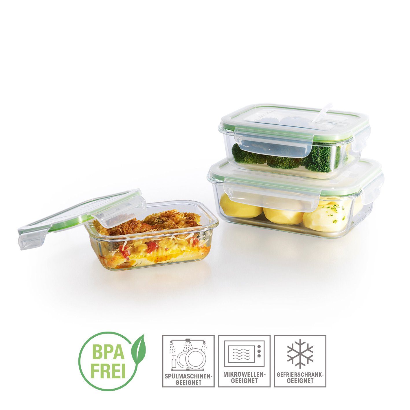 Frischhaltedosen glas set vorrats brot gefrier dose lunchbox mikrowelle rechteck.