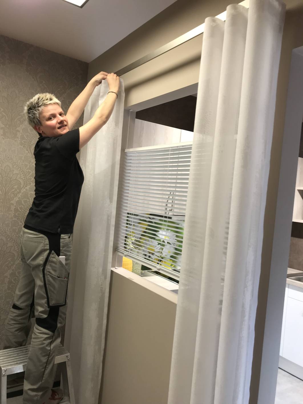 Gardinen abnehmen waschen wieder anbringen und das alles an einem tag.